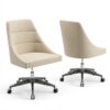 The Senna office chair epitomizes contemporary professional luxury. Its sculpted silhouette is wrapped in premium upholstery, featuring sophisticated horizontal channel stitching that adds textural depth to the ergonomic backrest. The design is defined by graceful, integrated sloping arms that descend seamlessly into a generous seat, providing a refined aesthetic without sacrificing comfort. Grounded by a five-star swivel adjustable height base and accented with high-performance casters, the Senna offers a fluid range of motion and an unmistakable presence for the modern executive suite.