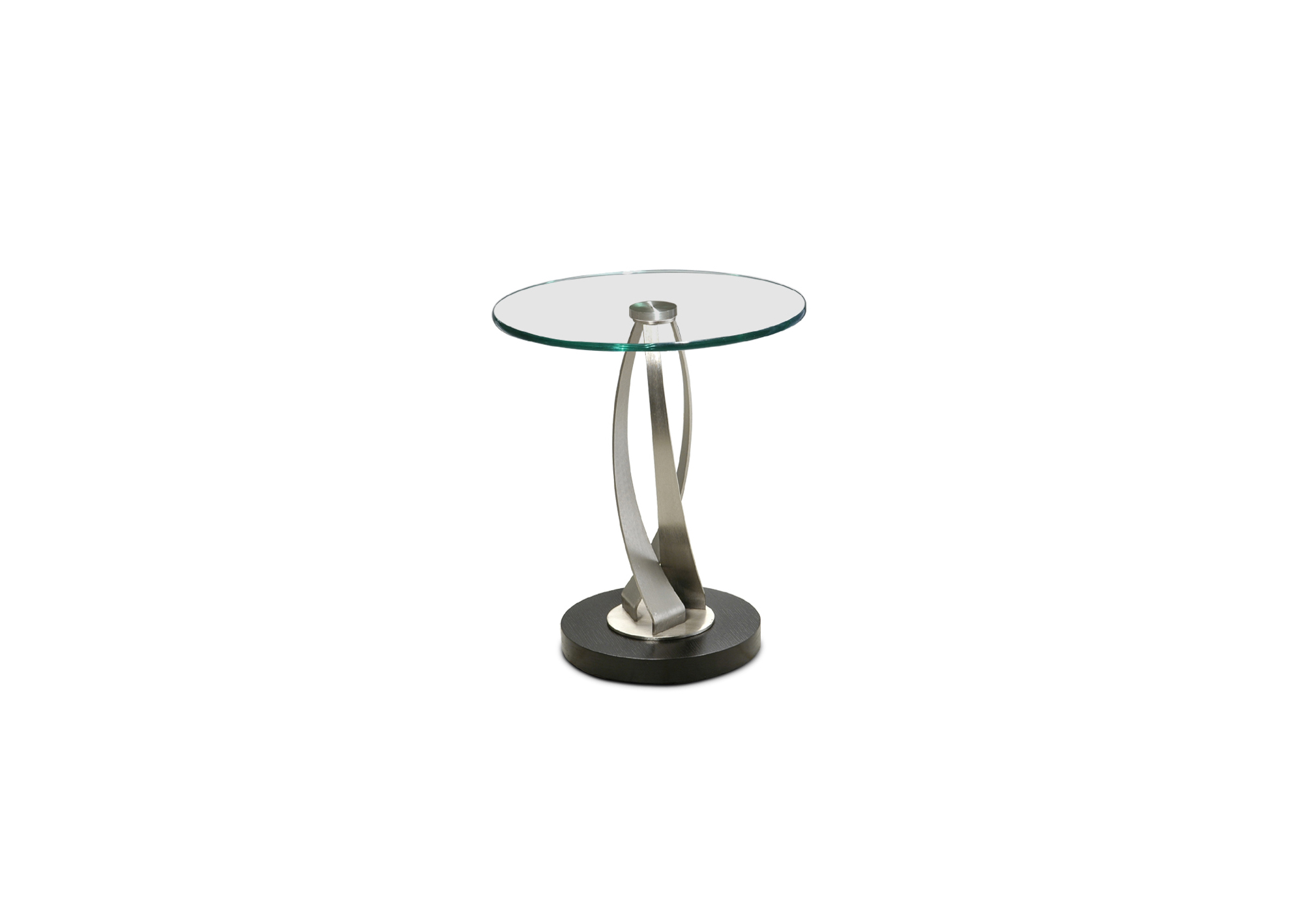 The dynamics of Gigi, Rene, and Tangent accent tables provide a contemporary agreement that Enhances all living spaces. Graceful and elegant, Gigi suggests a ballerina’s pirouette just as Rene remains stately and serene. Gigi's three Champagne-plated steel arms spiral up from a sturdy base, supporting a gleaming stainless steel disc that is bonded to the 1⁄2” thick round tempered glass top. Rene’s two interlocking arms gracefully meet at the glass base. Very sturdy and yet easily moveable, either Gigi and Rene will add a sculptural presence to any room. A new addition to our popular Tangent collection, this dynamic accent table provides the same sophisticated statement in a more compact, portable scale. A shimmering Champagne-plated arm curves gently upwards, grasping a stainless steel disc that is permanently bonded to the 1⁄2” thick clear tempered glass top. All bases available in Walnut veneer, while the Tangent incorporates steel feet available in Topaz only.
