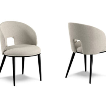 A uniquely curved floating back pierced by a square cutout flows about a round body, giving beauty and sophistication to your living space as well as providing the perfect support. Tapered legs are fully welded to the steel frame making this chair a durable as it is stylish.