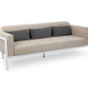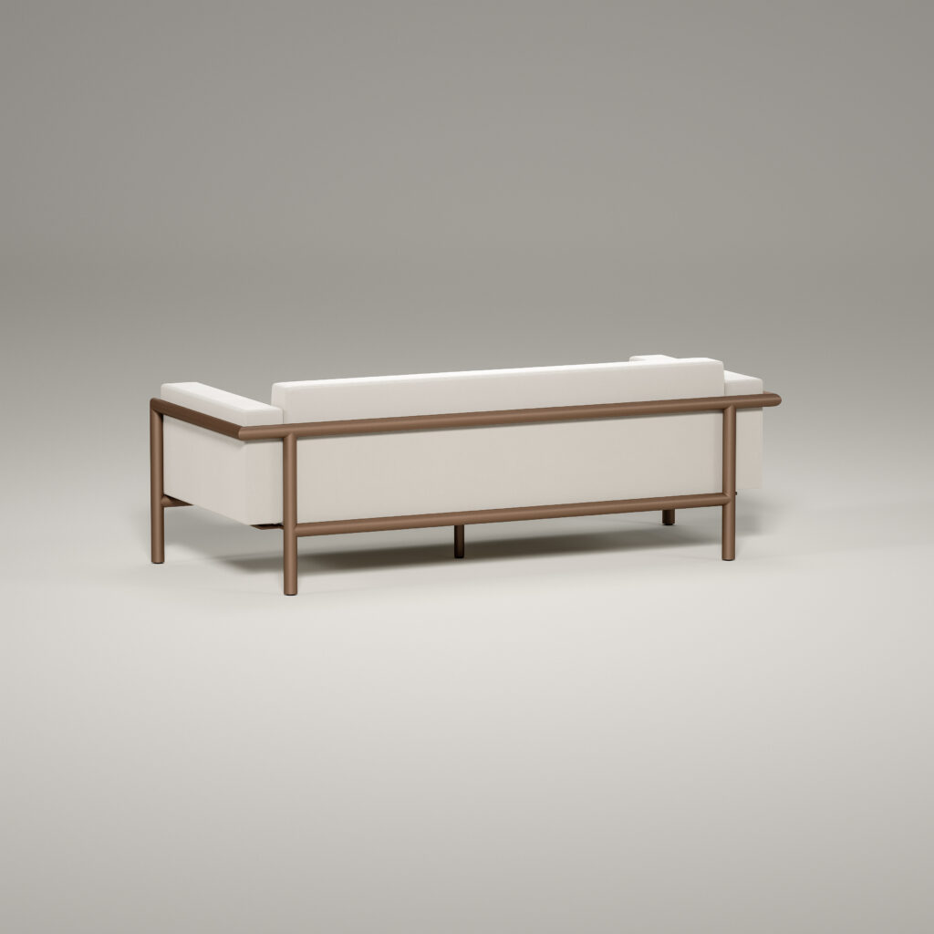 Canyon offers an external metal tubular frame that can be customized in the color of your choice. Thick foam seats and backs are enclosed with a modern track arm, and throw pillows are included.
