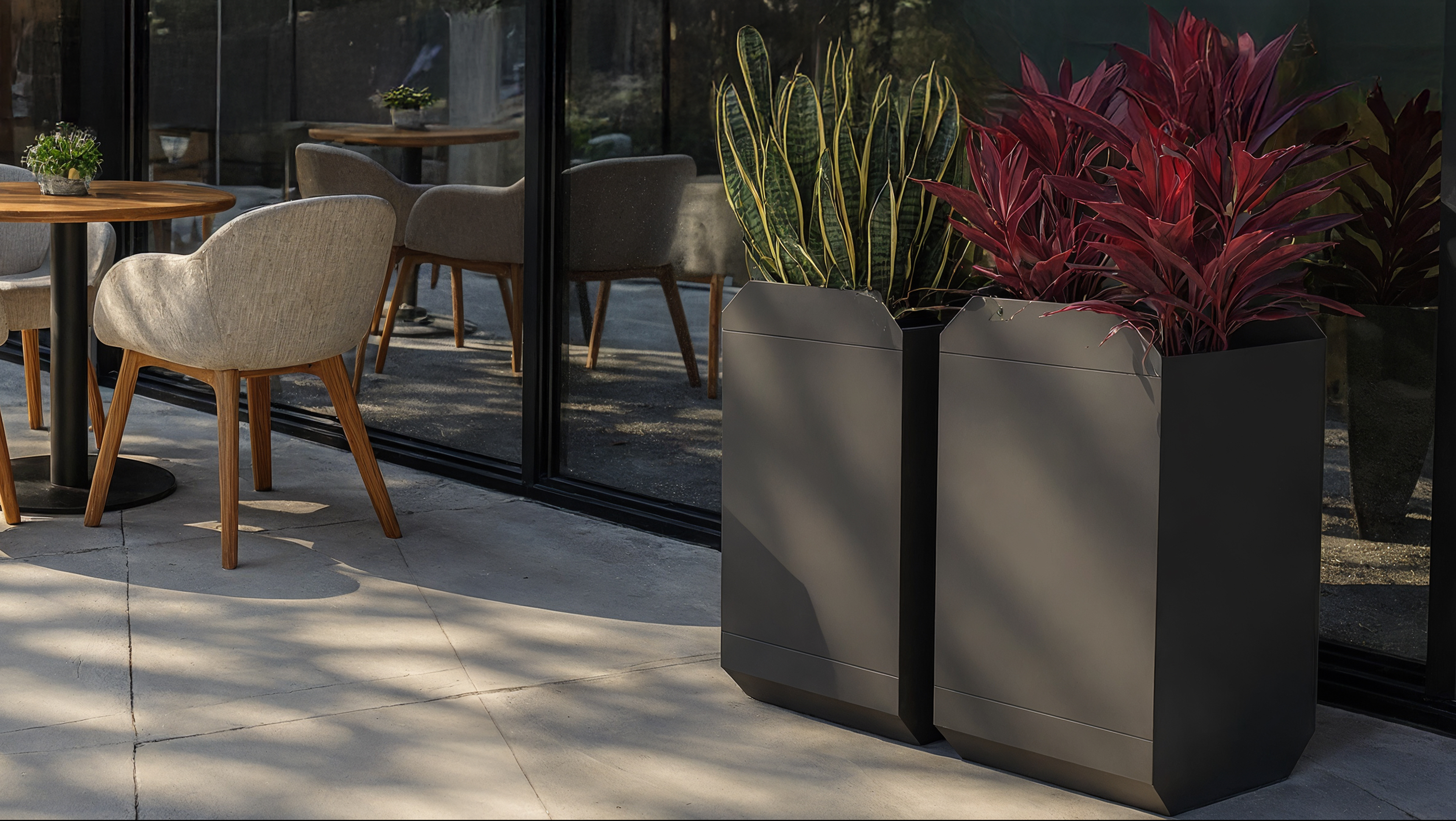 Blending precision and elegance, the Prisma Planter brings architectural geometry to indoor and outdoor environments. Defined by crisp chamfered edges and faceted planes, its sculptural silhouette evokes a modernist aesthetic with industrial roots. Ideal for hospitality or residential settings, Prisma stands as both a vessel for greenery and a statement in design minimalism. 304 Stainless steel material.