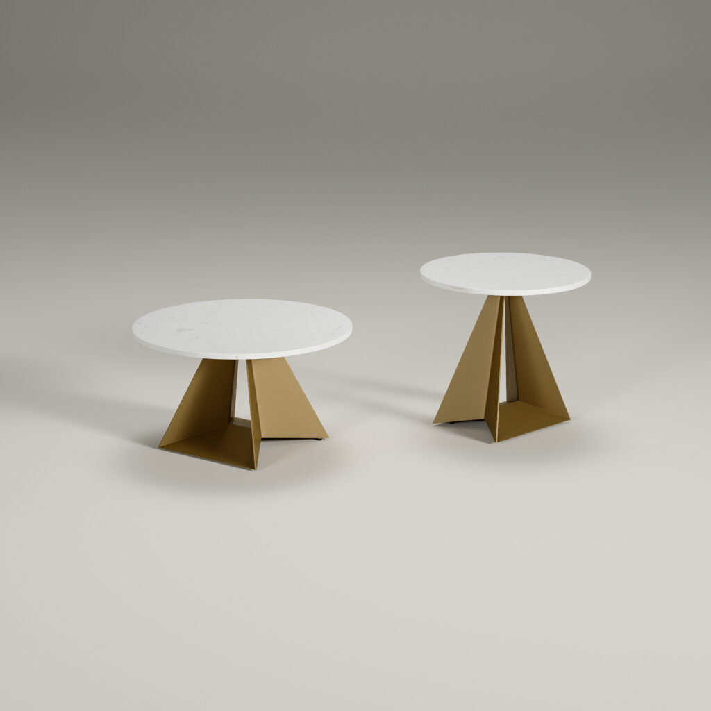 Unabashedly modern, Prism features twin arms that thrust upward to support the tabletop. These hefty steel frames surrounding a central void— this contradiction is the inspiration for the Prism collection. Angles abound, from the folded steel construction to the sleek geometric lines of the body.