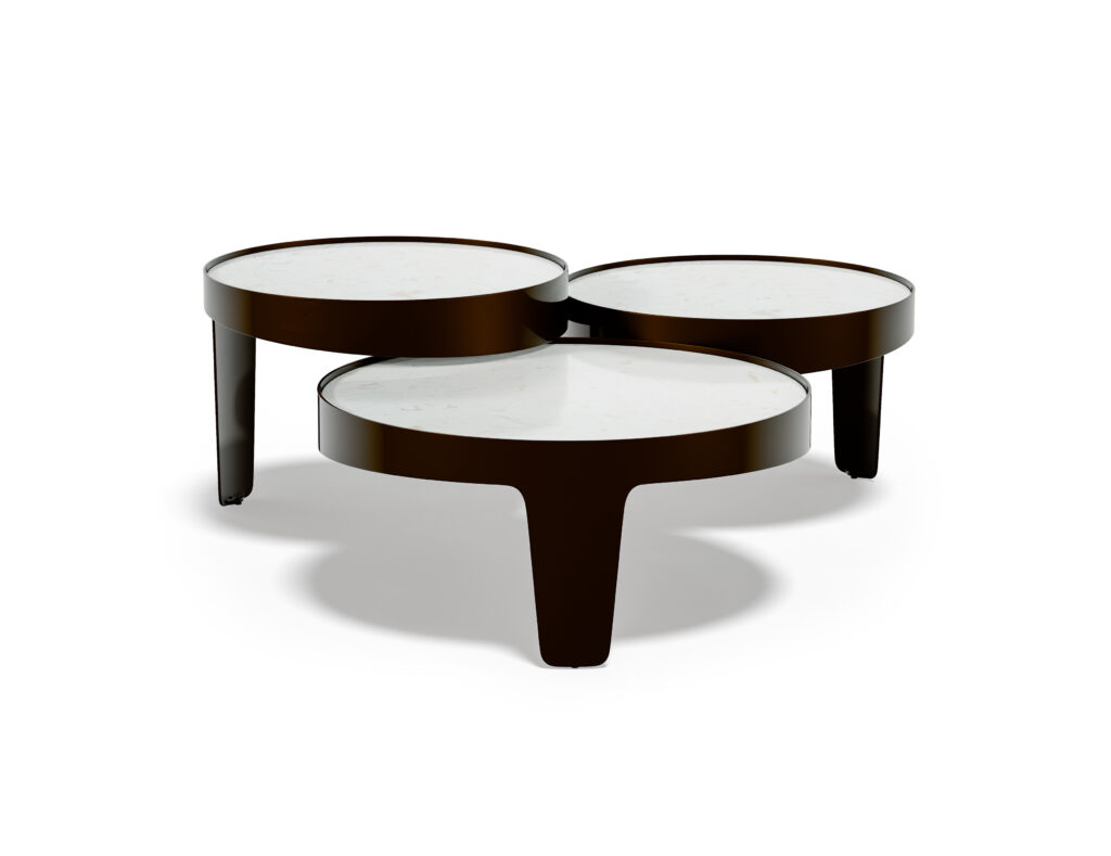 The Ronda cocktail table combines Japanese minimalism with modern functionality. It features three round table tops of different heights, reflecting traditional Japanese design. The metal frame offers support and adds an industrial touch, while its clean lines align with Japanese simplicity. Overall, the table enhances both aesthetic appeal and practicality in your home.