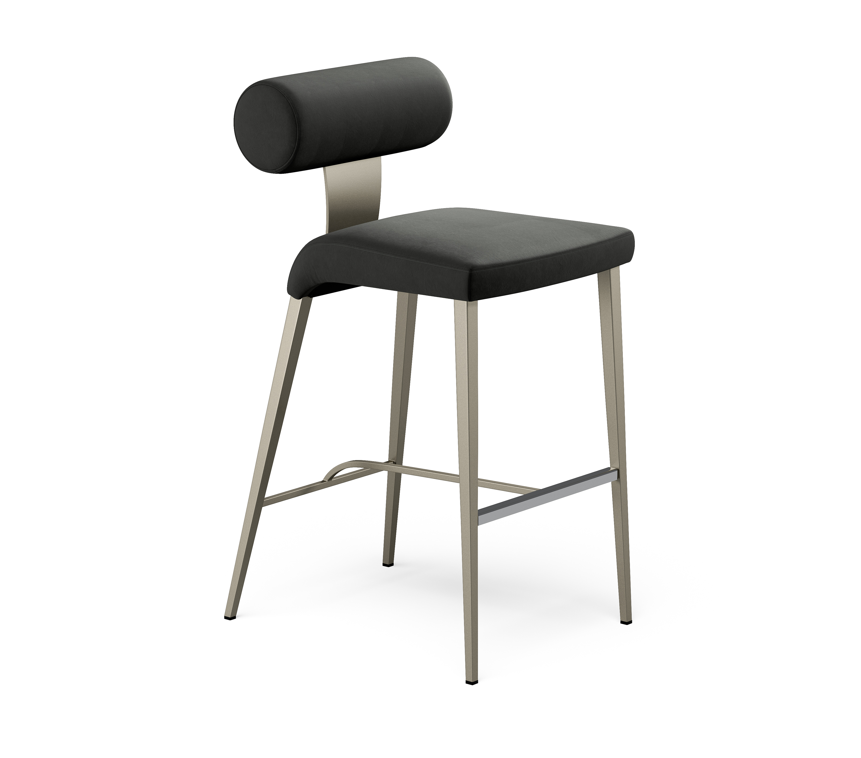 Bolo brings a playful, yet geometric touch to any contemporary environment. The generously padded cylindrical back provides both surprising long-term comfort and a truly unique modern design statement. Square tapered steel legs with an athletic stance support the distinctive reverse waterfall seat cushion, with a solid steel arc balancing the distinctive cylindrical back.
