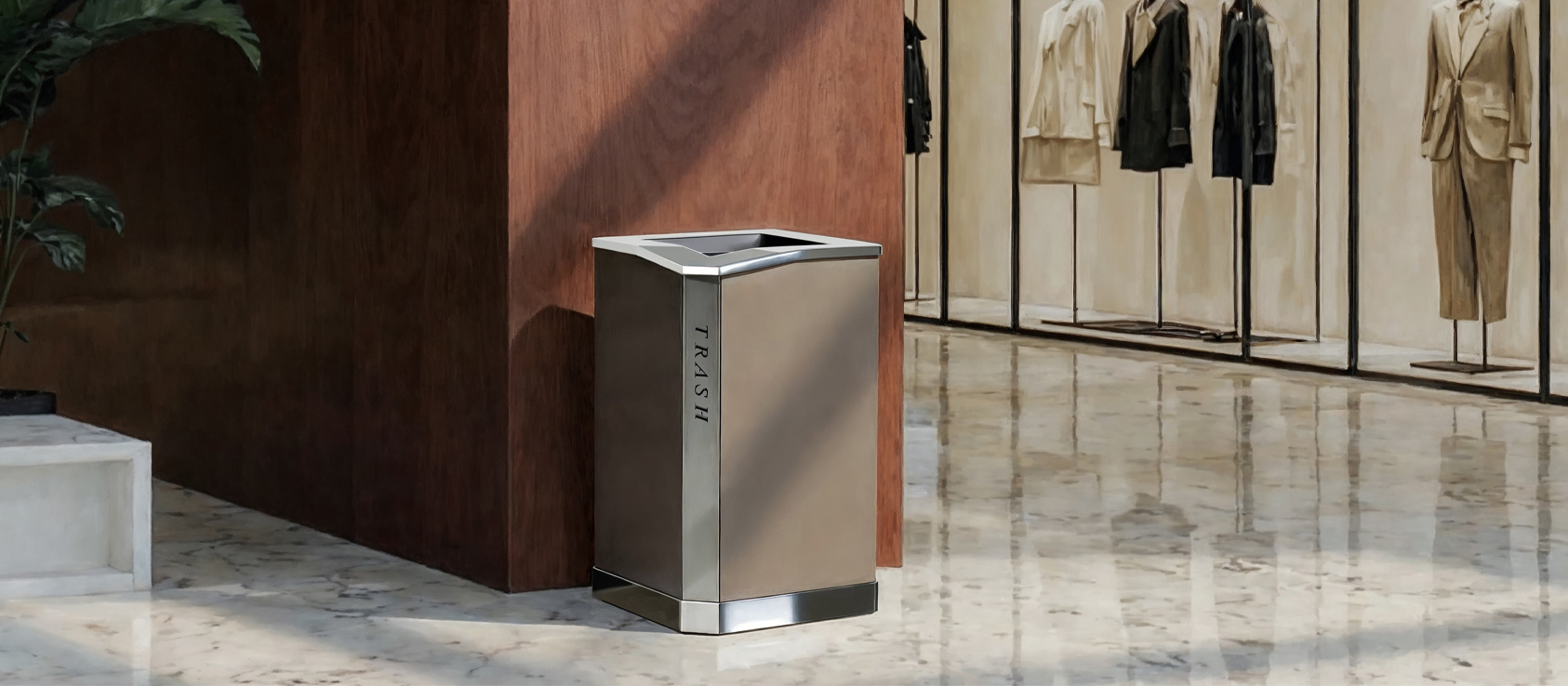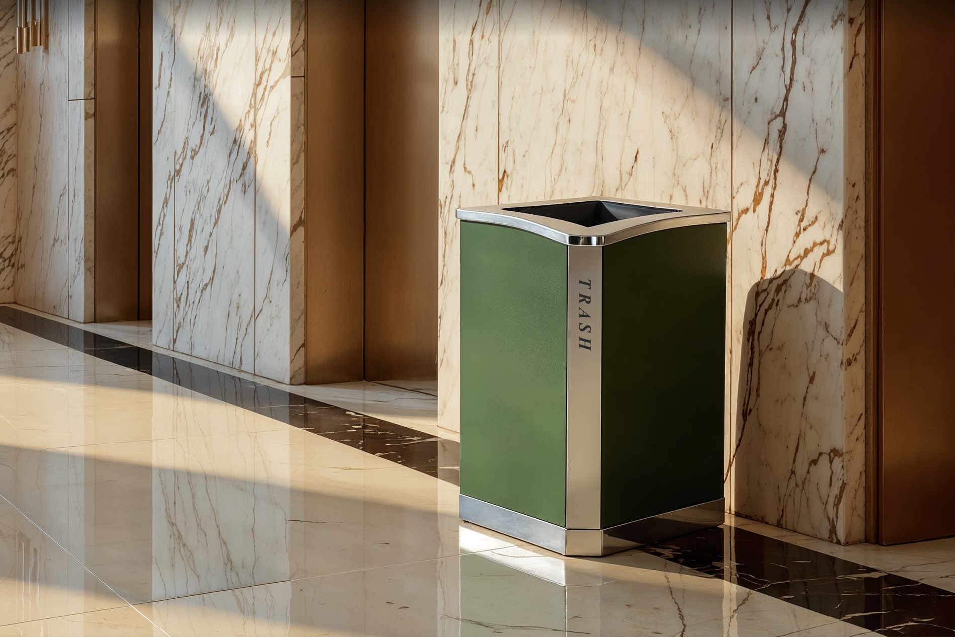 Canon is a sleek indoor commercial trash can designed for luxury hotels, offices, and hospitality spaces. Combining modern elegance with durable construction, its recessed top and refined detailing make it both functional and visually striking, seamlessly enhancing high-end interiors while maintaining practicality and style.