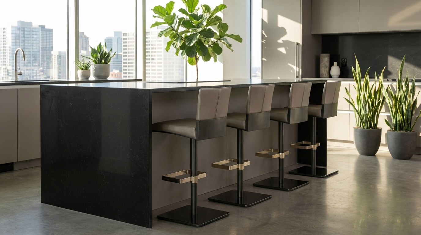 Our Carina swivel barstool is designed to fascinate and embrace your modern imagination. Sleek and sophisticate forms have been translated into an elegant adjustable swivel barstool with polished chrome footrest. The edgy look and interesting lines of Carina give it the flexibility to fit anywhere in your home. Carina provides surprising comfort, with a slightly curved back to give you proper support, and the tapered seat providing real comfort. Upholstery is available in all Elite fabrics and leathers, with the sturdy steel frame offered in all Elite powder-coat finishes. Companion dining chair, bar and counter stools are also available.