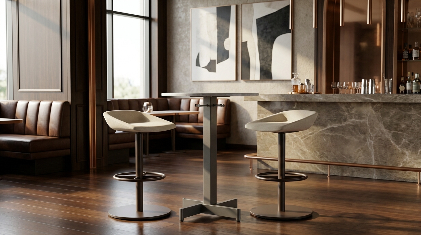 The Chip swivel barstool is a masterpiece of modern minimalist design, blending sleek lines with exceptional comfort. Its expertly contoured seat rests atop a slender yet sturdy pedestal base with a convenient return swivel function. A circular footrest adds a touch of practical elegance, while the round base ensures effortless stability. Perfectly suited for contemporary kitchens and upscale bars, the Chip barstool elevates any interior with its understated sophistication.
