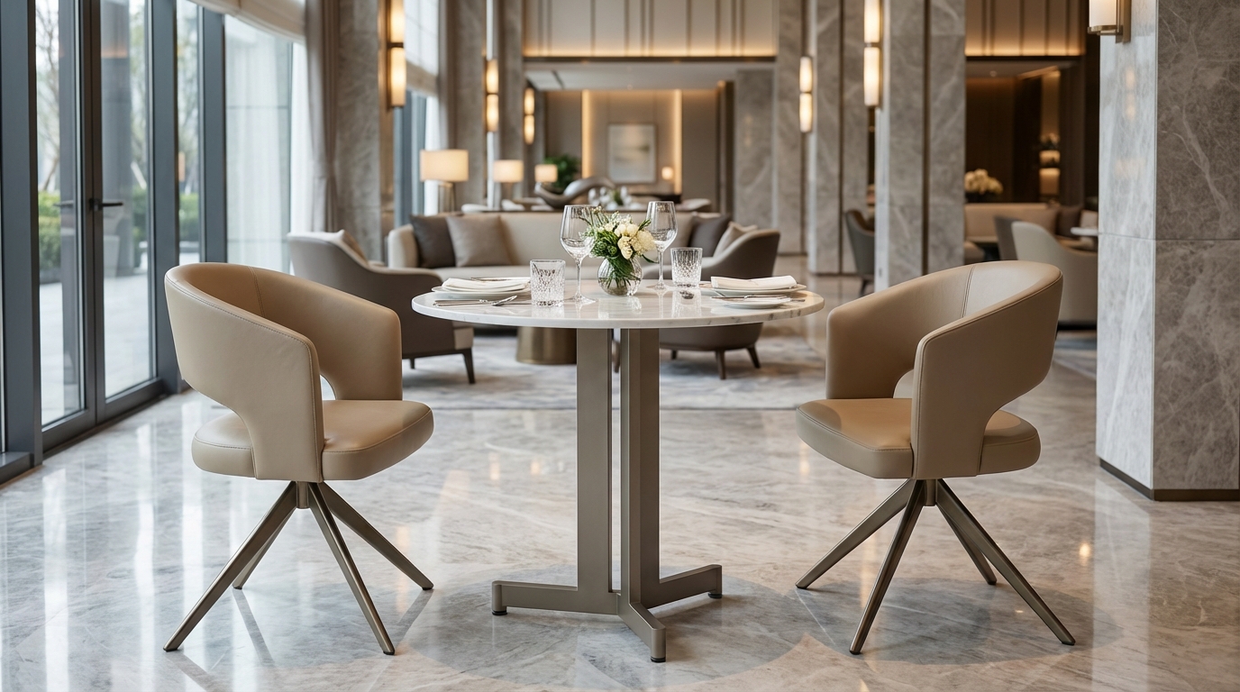 The Circa swivel dining chair is a masterpiece of contemporary design and unparalleled comfort, perfect for the discerning interior. This elegant chair features a fully upholstered back and seat, meticulously crafted for luxurious support and timeless appeal. The base features a memory swivel that can be rotated any direction 360 degrees and still return to face forward.