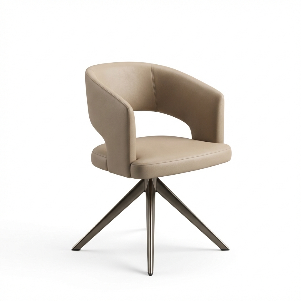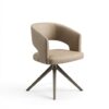 The Circa swivel dining chair is a masterpiece of contemporary design and unparalleled comfort, perfect for the discerning interior. This elegant chair features a fully upholstered back and seat, meticulously crafted for luxurious support and timeless appeal. The base features a memory swivel that can be rotated any direction 360 degrees and still return to face forward.