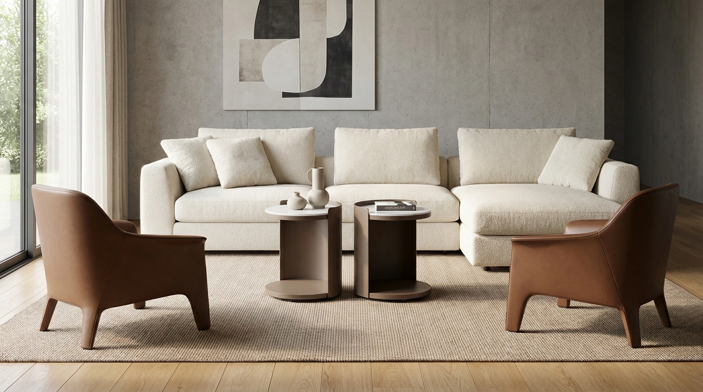 A curved steel panel with an oval opening wrap the round top of the Crescent accent table. The top is formed of cultured stone. Hidden casters allow the Crescent to be moved with ease.