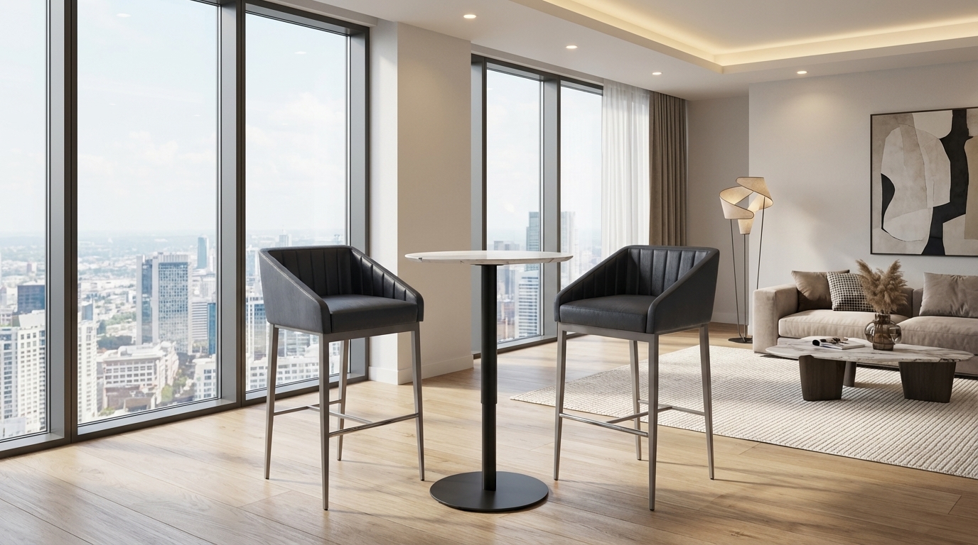 Folio offers a boldly contemporary look, with a crisply channeled wraparound back, raked arms, and a sculptural steel base. Not only visually striking, this tapered steel base also provides a discreet handle for ease of mobility. The plush channels and generous seat cushion ensure long-term comfort. Steel frames are available in all Elite powder-coat finishes. Although designed to complement our dynamic Icon tables, Folio chairs will easily coordinate with any of our popular dining tables.