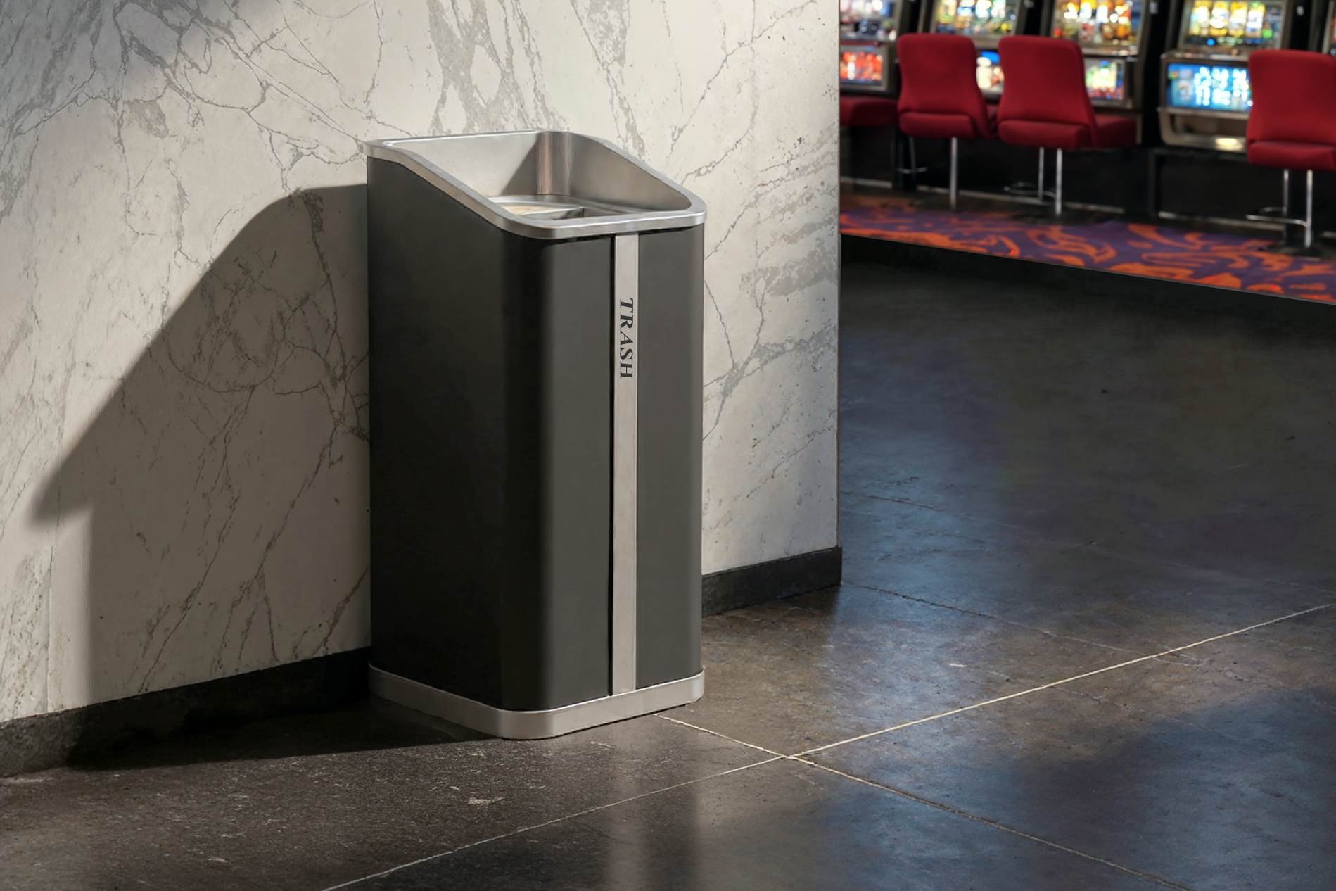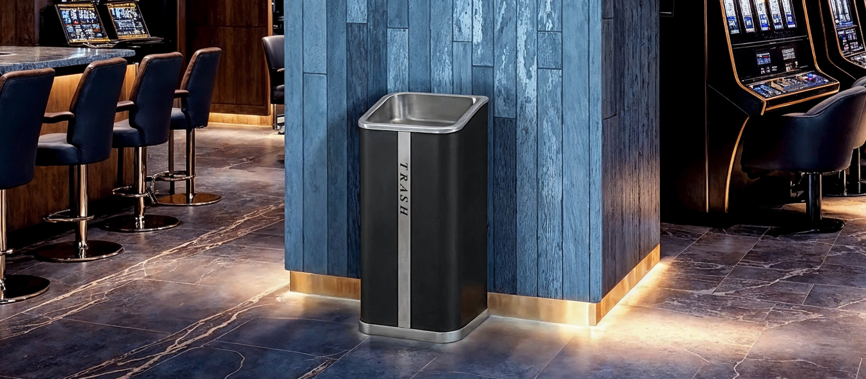 Hillcrest is an indoor hospitality trash receptacle designed for hotels, resorts, and commercial spaces. Its sleek, dual-compartment design combines trash and ash disposal with durability and elegance, perfect for high-traffic, upscale environments.