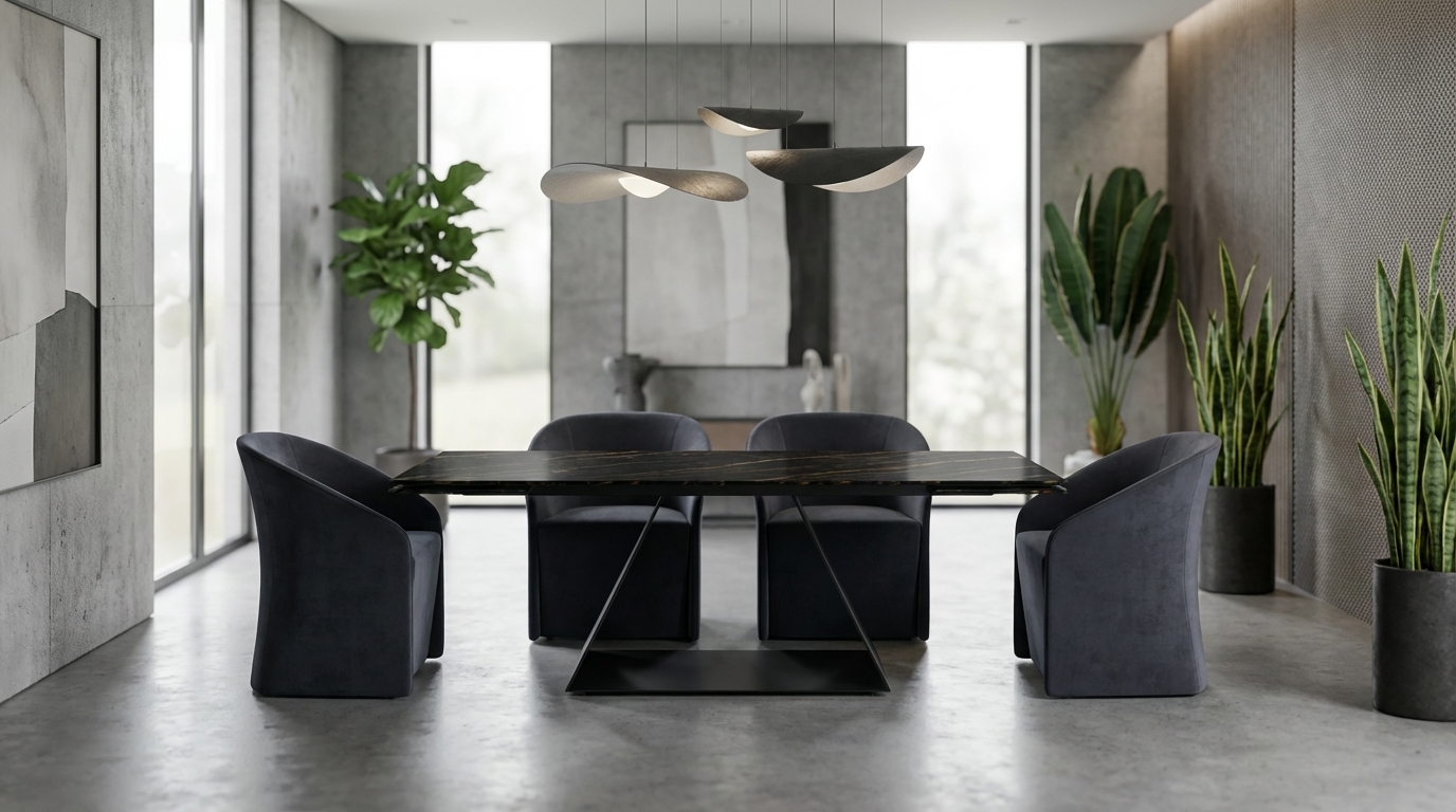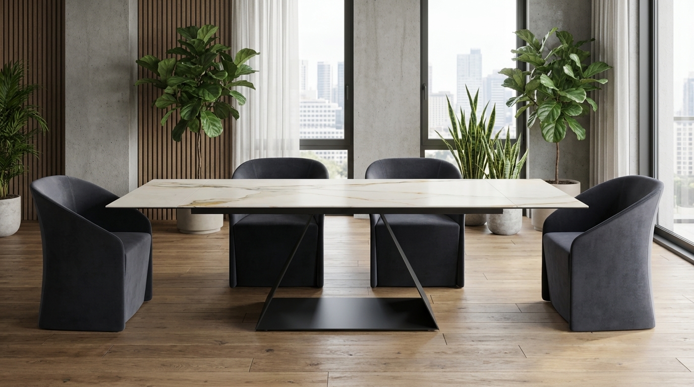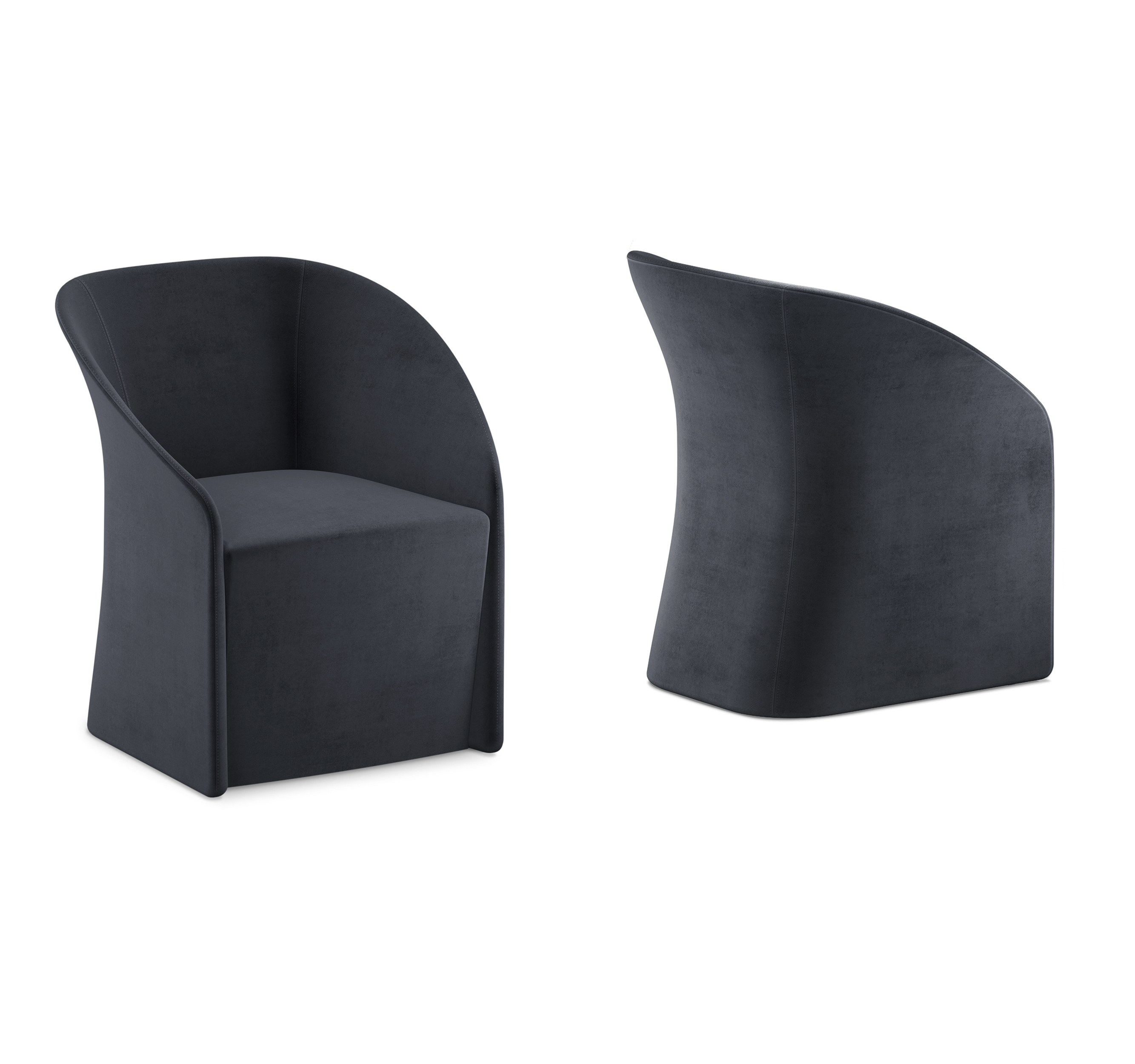LaPorte features dramatic curves in a wraparound padded back. For a touch of sophistication, the fully upholstered wraparound back is extended all the way to the floor. This model features hidden casters.
