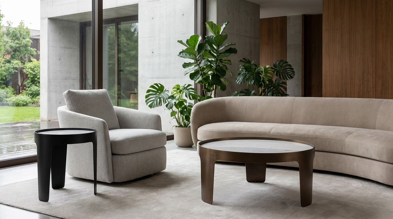 The Lotus end table draws inspiration from the lotus flower's elegance, featuring a rounded shape and a three-legged base. The base, resembling lotus petals, offers stability and a modern organic feel. Available in different metal finishes, this table complements various décors, blending minimalistic design with artistic elegance.