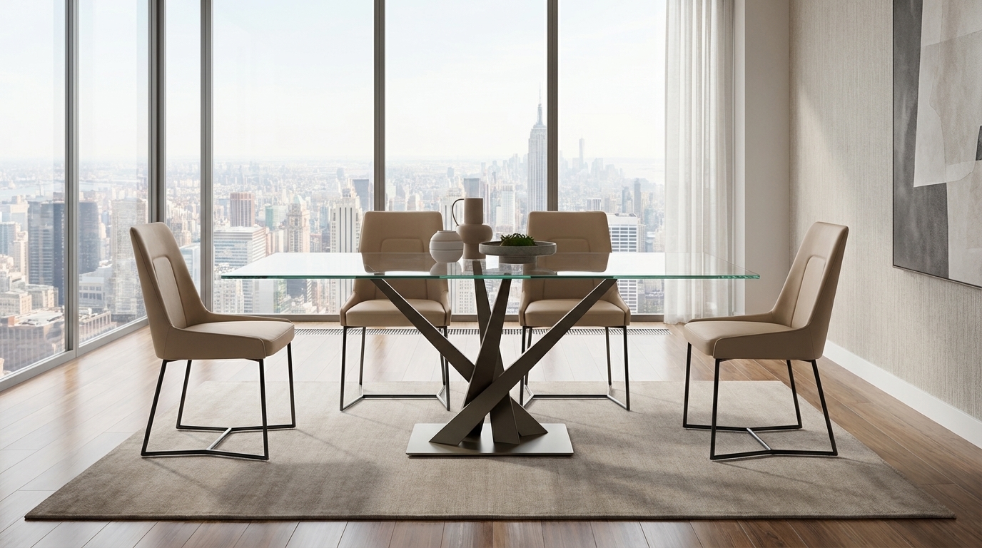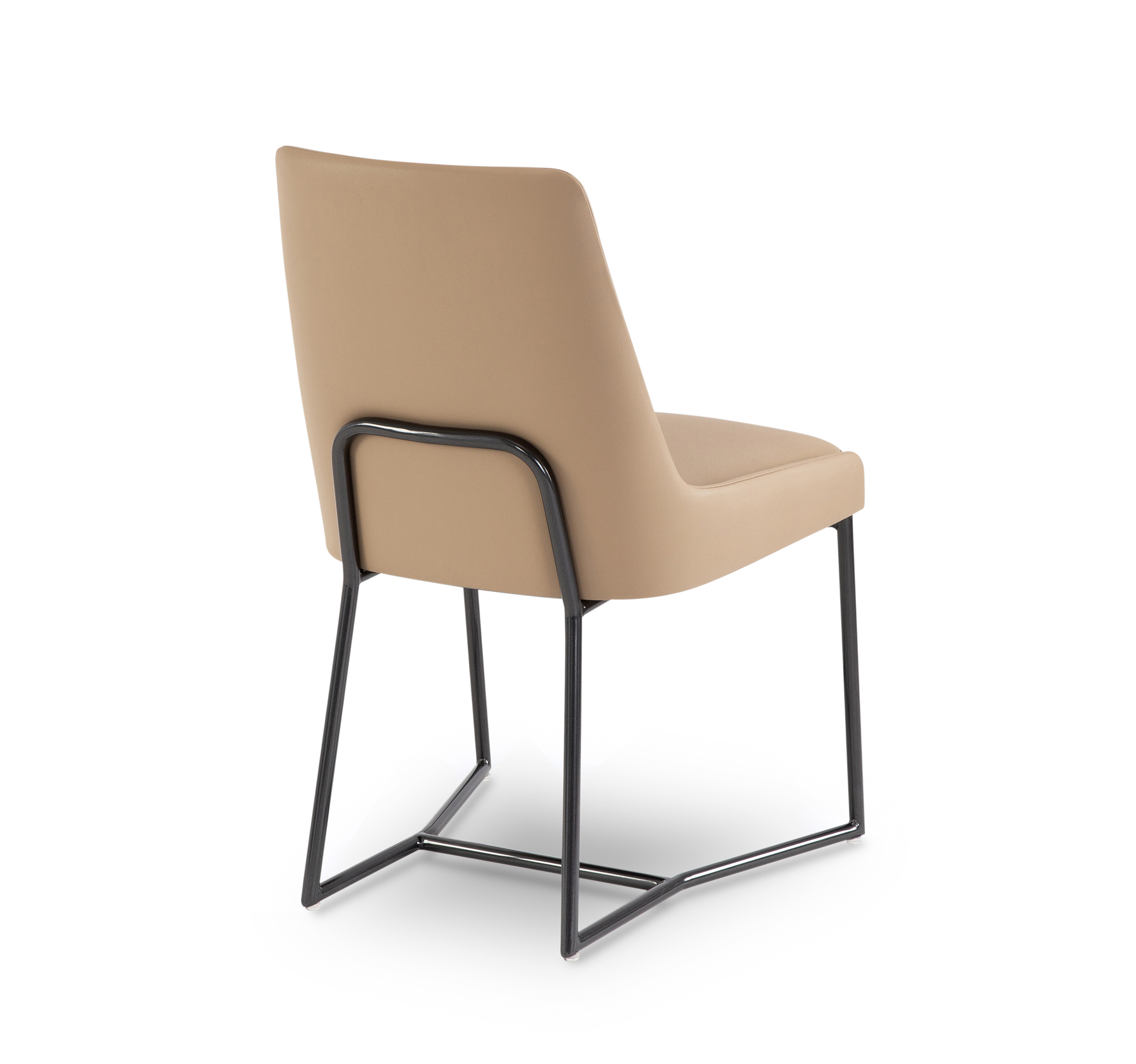 Sleek and chic, Luxe presents a new direction in upscale modern dining. The wafer-thin upholstered back is bold and dynamic, cradling the seat cushion and rising up to provide superb comfort. Both low and tall back versions feature a soft lozenge stitch detail, which is echoed at the top of the rear legs. The slim but sturdy steel base boasts a distinctive angular footprint detail. Lightweight, comfortable, and stylish, Luxe is the perfect choice for a clean, modern statement. Though shown with our new Victor extension table, Luxe will easily coordinate with any Elite dining table to create a breathtaking dining ensemble. Steel frames are offered in your choice of any Elite powder-coat finish. Companion bar and counter stools are also available.