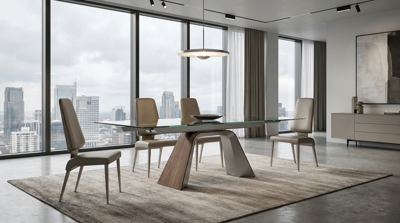 Magnum features an energetic contemporary profile, with a rich palette of materials and sterling comfort. The sleek, tapered seat cushion rolls downward to join the aggressively splayed rear legs. Magnum’s concealed frame boasts tapered square steel legs, and is available in any Elite powder-coat finish. A sturdy champagne-plated bracket supports the plush upholstered backrest, which is offered either fully upholstered or wrapped in a rich walnut veneered shell. Choose from any Elite fabric or leather to customize Magnum to fit your decor. Although designed to complement our dynamic Hyper table, Magnum will easily coordinate with any of our popular dining tables. Also available in various finishes.