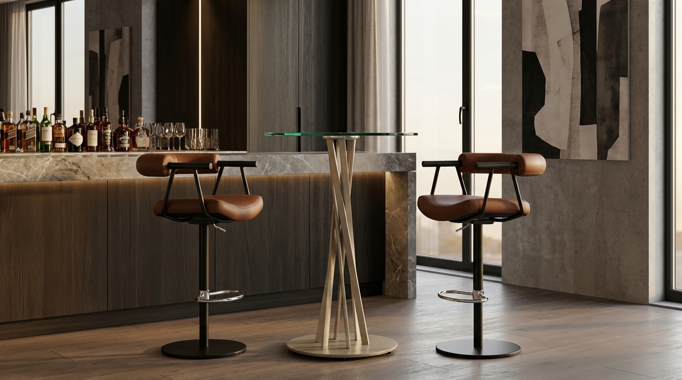 Mason possesses streamlined elegance and dynamic lines. It features a swirling vortex of steel tubes that rise up to create a dramatic, sculptural column. Visually intriguing, this column supports a solid stainless steel disc, which is permanently bonded to the tempered ½” thick glass tabletop. Mason will easily coordinate with and complement any of our popular barstools. Steel base and column are available in your choice of any Elite powder-coat finish.