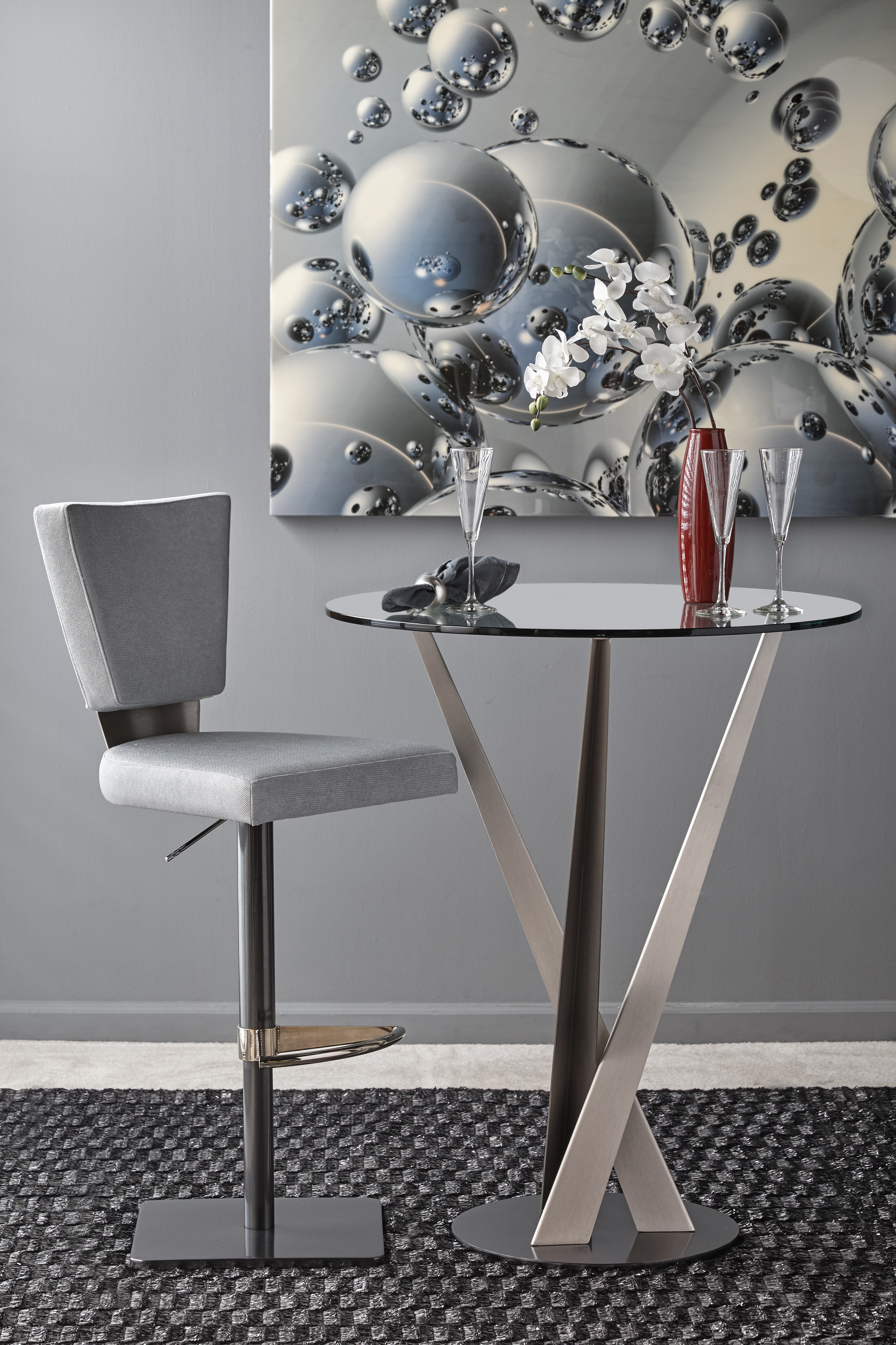 Sitting Pretty redefined! Monroe’s subtlety captures a vintage profile and updates it with modern materials. Enjoy the best of both worlds with this timeless design. A Champagne–plated accent dramatically supports and flexes with the plush contoured back enhancing the Monroe’s ultimate comfort. The polished chrome footrest attached to the durable powder-coat frame adds drama and function to the Monroe barstool. Adjust the seat height between counter or bar heights with the hydraulic gas-lift. It is easy! The Monroe barstool is available in various durable powder-coat finishes. Be sure to check-out all our fabric choices! Let the party begin!