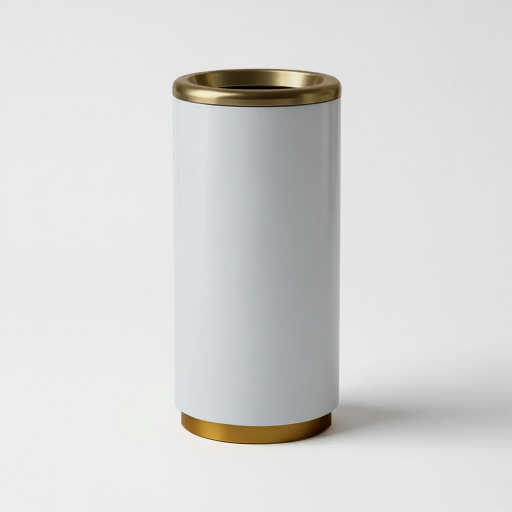 The Montecito is a durable hospitality trash bin is built for reliability, style, and easy maintenance. Ideal for hotels, resorts, and restaurants, it stands up to daily commercial use while enhancing any high-traffic space with a sleek, modern design. The body is available in your choice of powder coat color, and the top is PVD brass or chrome. A heavy duty 13 gallon liner is included.