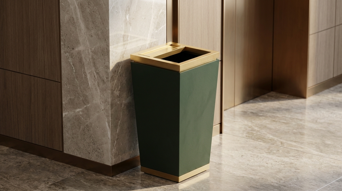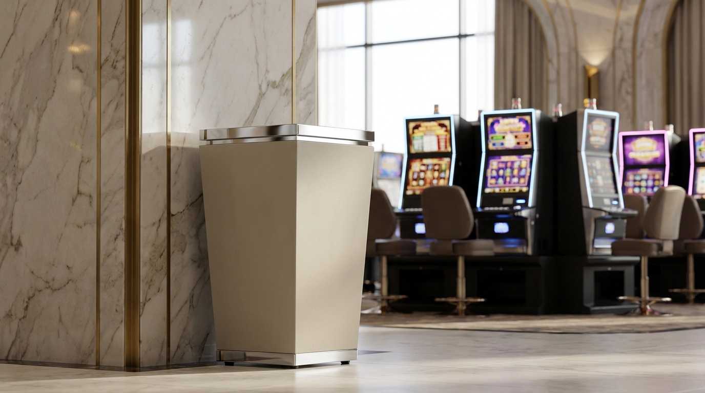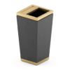 Pyramid features a tapered design where the top narrows gradually to the base. Upscale hotels and casino properties are the natural place for the modern design. A lift-off top directs the waste into the galvanized steel liner, which is removable. This top and the base trim is available in PVD brass or chrome. The main body of Pyramid comes in your choice of our Elite powder coat colors to fit your property style.