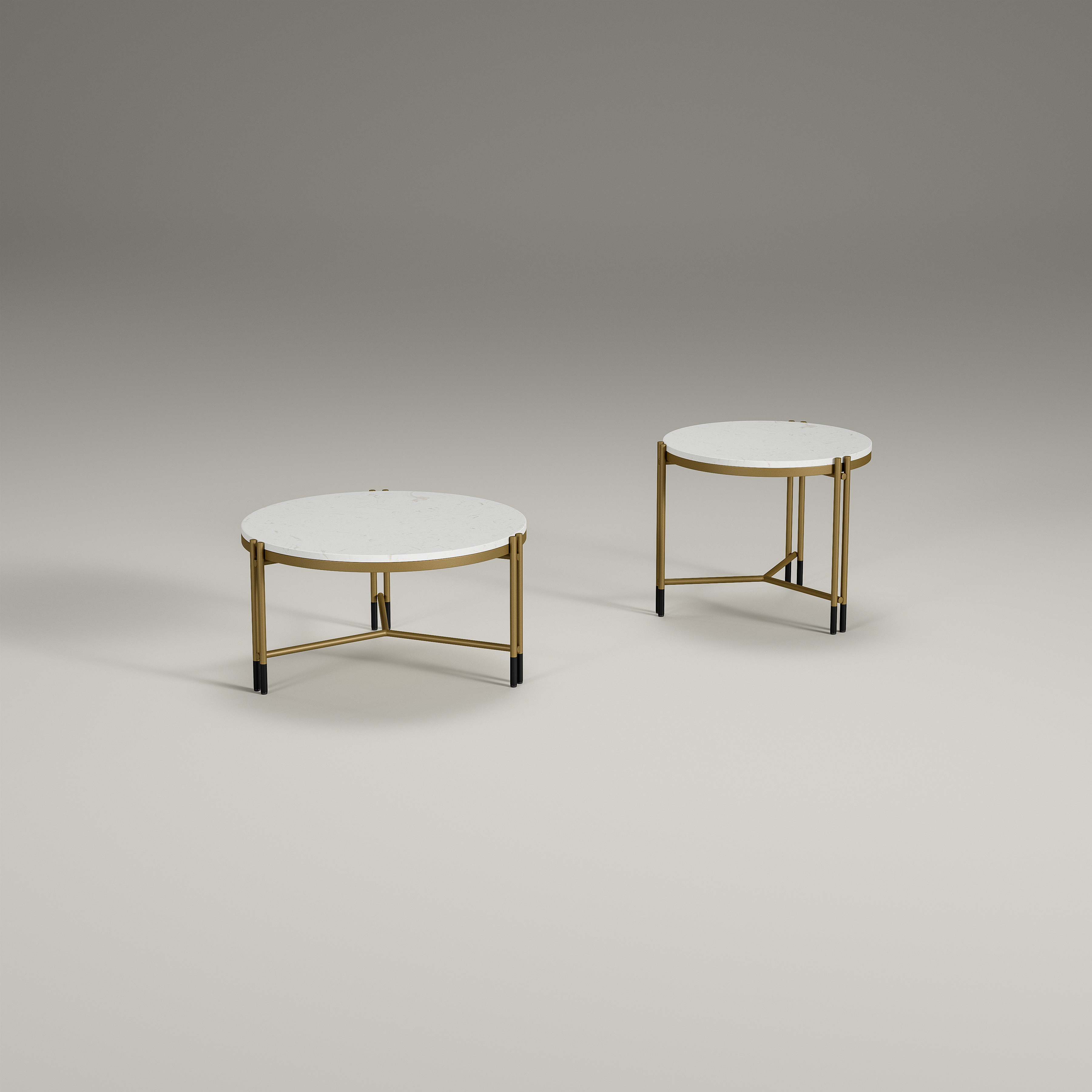 The cultured stone Venezia top is captured by vertical legs that feature a two tone powder coat in the colors of your choice. A three way stretcher joins the legs for strength and style.