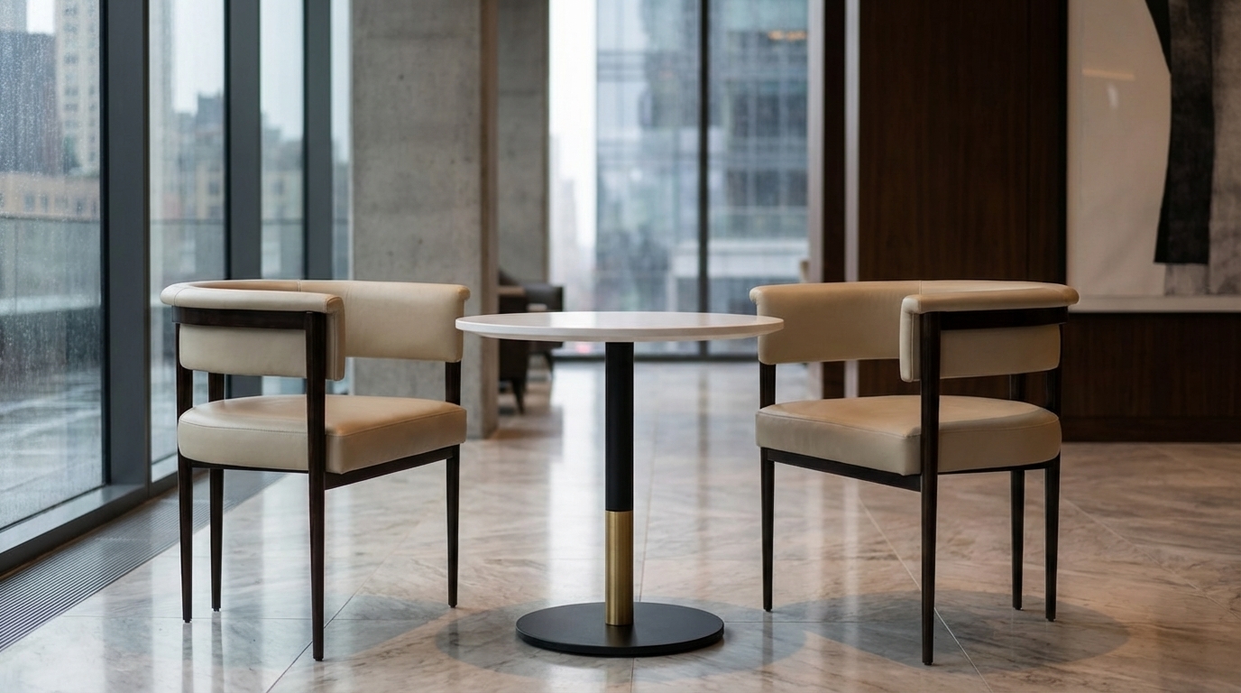 Introducing our Ruben Bistro Table, meticulously crafted for the demands of hospitality settings. Its sturdy metal base with a round plate ensures stability, while the central column supports a stone top, providing a reliable surface for guests to dine and socialize. Choose from a two-tone finish option to suit your establishment's aesthetic. With its compact design and spacious round surface, this table is perfect for creating intimate dining settings indoors or outdoors. Its durable construction withstands daily use, making it an ideal choice for restaurants, cafes, and patios. Upgrade your dining area with our Ruben Bistro Table and provide guests with a stylish and functional seating option they'll appreciate.