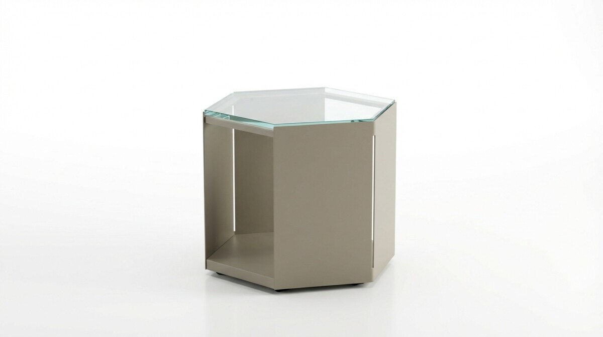 The  hexagon shape of the Turin accent is created by folded steel opposing sides, with laser cut vertical lines at the folds.  Hidden casters are included for easy mobility. Whether styled together or on their own, these tables brings versatility and personality to any space.